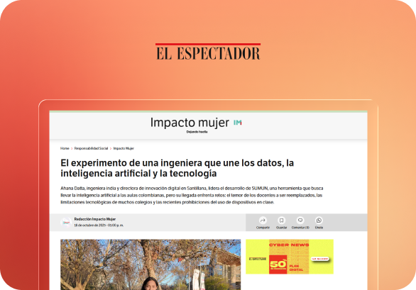 Ahana Datta, ingeniera india y directora de innovación digital en Santillana, lidera el desarrollo de SUMUN, una herramienta que busca llevar la inteligencia artificial a las aulas colombianas, pero su llegada enfrenta retos: el temor de los docentes a ser reemplazados, las limitaciones tecnológicas de muchos colegios y las recientes prohibiciones del uso de dispositivos en clase.
